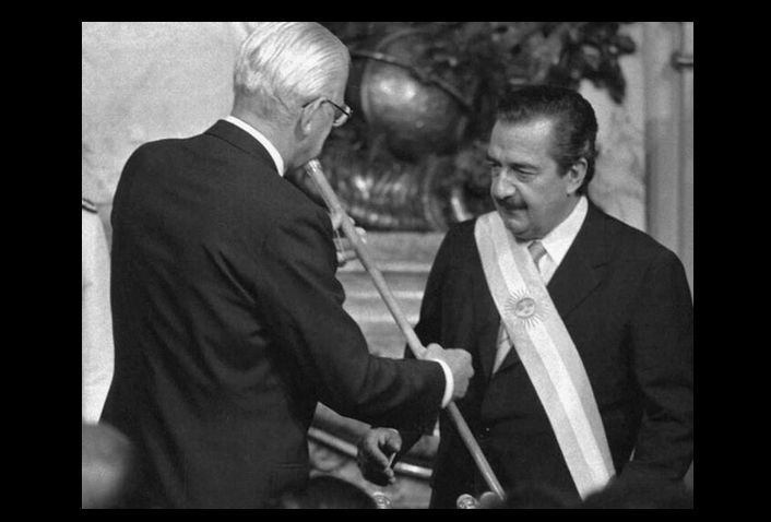 - Bignone, último presidente de facto, entrega el mando.