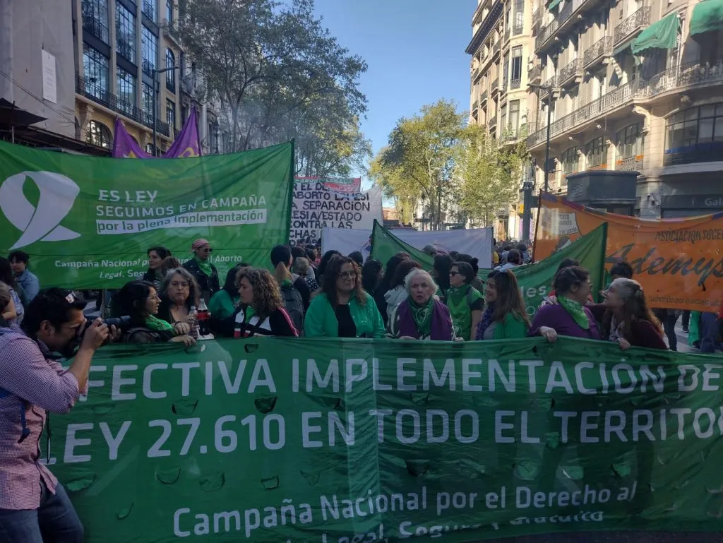 La Campaña Nacional por el Derecho al Aborto Legal, Seguro y Gratuito también convocó a "movilizar en todo el país para defender el derecho a decidir sobre los cuerpos, plasmado en la ley 27.610 y conquistado por la gesta del movimiento feminista y de la diversidad sexogenérica que desembocó en la marea verde".