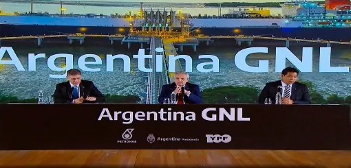 Il governo dell'Argentina ha annunciato la chiusura di un accordo tra la compagnia petrolifera statale Ypf e la sua omologa della Malesia, Petronas, per la costruzione di un impianto offshore di gas naturale liquefatto (Gnl) destinato alla produzione proveniente dal bacino non convenzionale di Vaca Muerta. L'annuncio è stato dato giovedì dallo stesso presidente Fernandez in una conferenza in presenza dove era accompagnato dal presidente di Ypf, Pablo Gonzalez, y dall'amministratore delegato di Petronas, Datuk Tengku Muhammad Taufik.