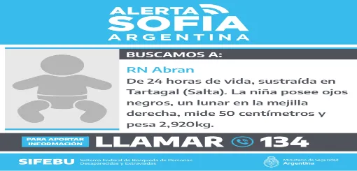 Desde Nación se activó el Alerta Sofía para encontrar a la beba robada del Hospital Juan D. Perón de Tartagal. En diálogo con Norte Grande el Dr. Acevedo gerente interino del nosocomio expresó que todos deberán responder legalmente en algún momento, pero que, por ahora, es urgente encontrar a la recién nacida. El funcionario catalogó de "cosa de locos" lo ocurrido y señaló que es la primera vez que se vive un caso así en el hospital cabecera del dpto. San Martín.