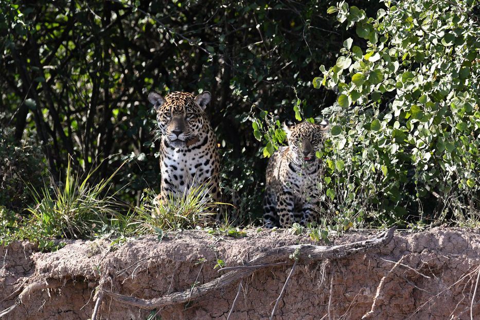 Nalá, una yaguareté liberada hace poco más de un año, y su cría fueron observados y fotografiados por los guías locales Pablo Luna y Darío Soraire.