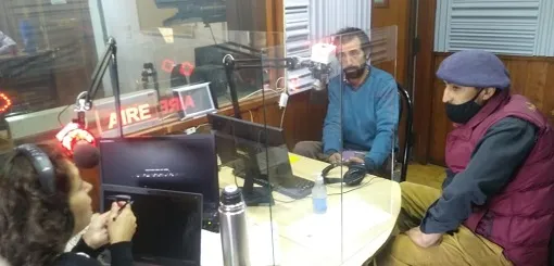 Sebastián Bordiga y Ricardo Sánchez, vecinos de Cuesta del Ternero, en Radio Nacional El Bolsón.