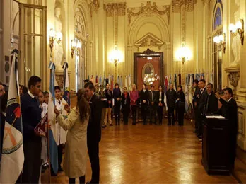 En el Salón de La Bandera, se realizó esta mañana el Acto Protocolar correspondiente al 28 de Mayo. Estuvieron presentes, autoridades y profesionales Ceremonialistas, así como delegaciones escolares.