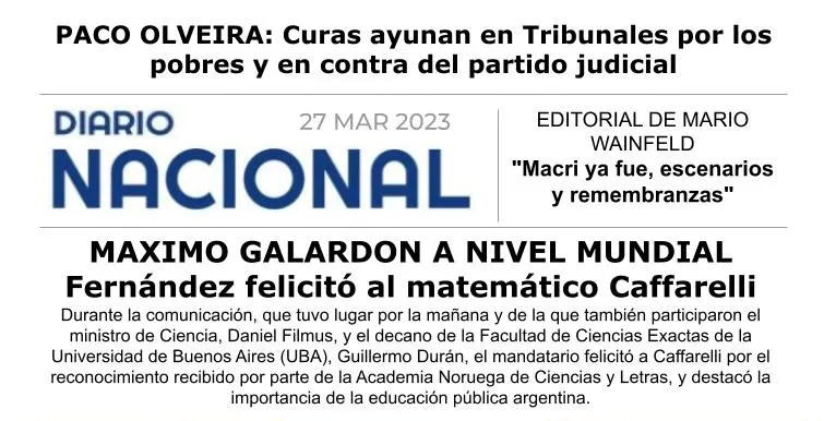 Durante la comunicación, que tuvo lugar por la mañana y de la que también participaron el ministro de Ciencia, Daniel Filmus, y el decano de la Facultad de Ciencias Exactas de la Universidad de Buenos Aires (UBA), Guillermo Durán, el mandatario felicitó a Caffarelli por el reconocimiento recibido por parte de la Academia Noruega de Ciencias y Letras, y destacó la importancia de la educación pública argentina.