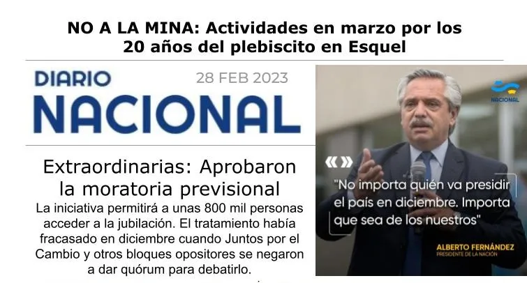 LRA 9 Esquel - NO A LA MINA: Harán actividades en marzo por los 20 años del plebiscito en Esquel
