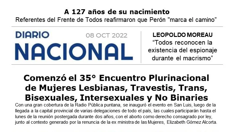 San Luis inauguró el 35° Encuentro Plurinacional de Mujeres Lesbianas, Travestis, Trans, Bisexuales, Intersexuales y No Binaries, luego de la llegada a la capital provincial de delegaciones de todo el país, las cuales participarán de la reunión postergada dos años por la pandemia, con el aborto como derecho consagrado por ley, y en el contexto de la renuncia de la ex ministra de las Mujeres, Elizabeth Gómez Alcorta.