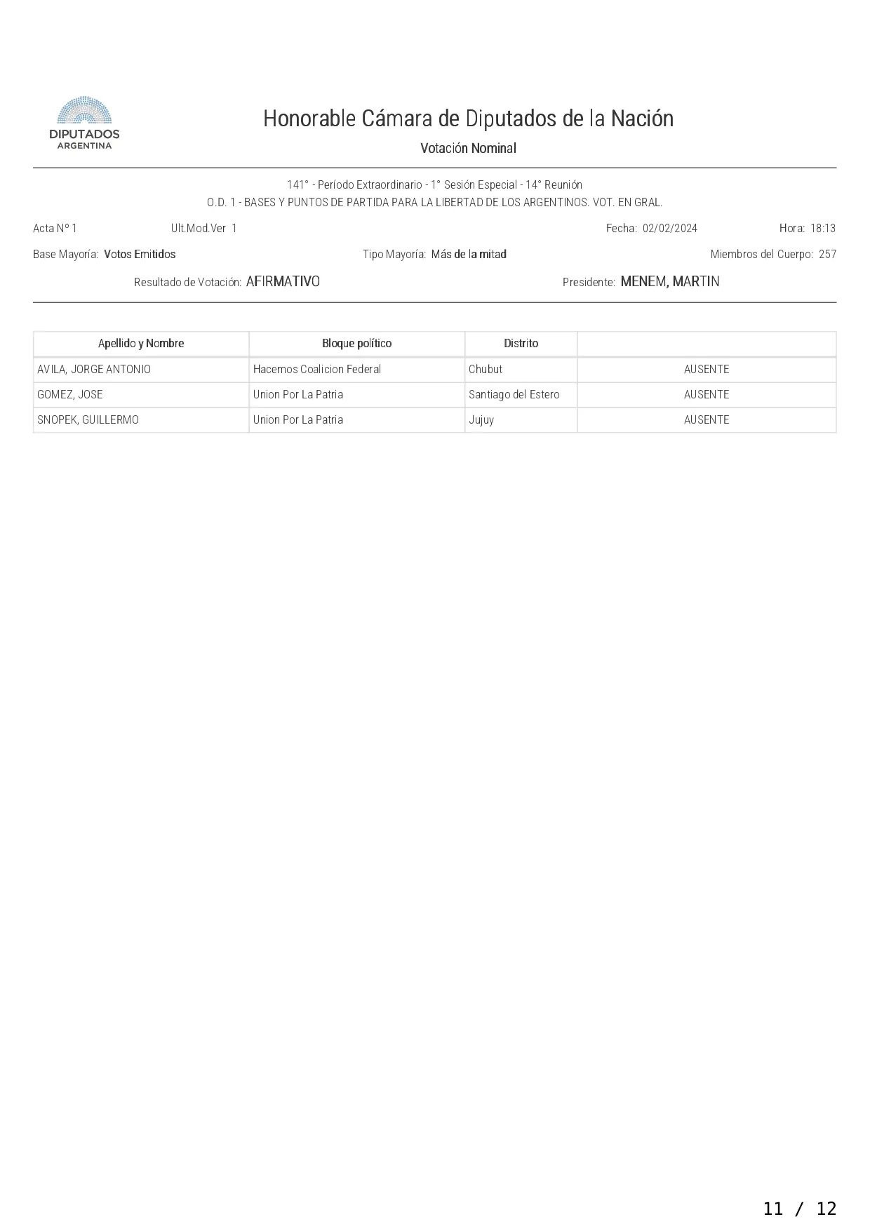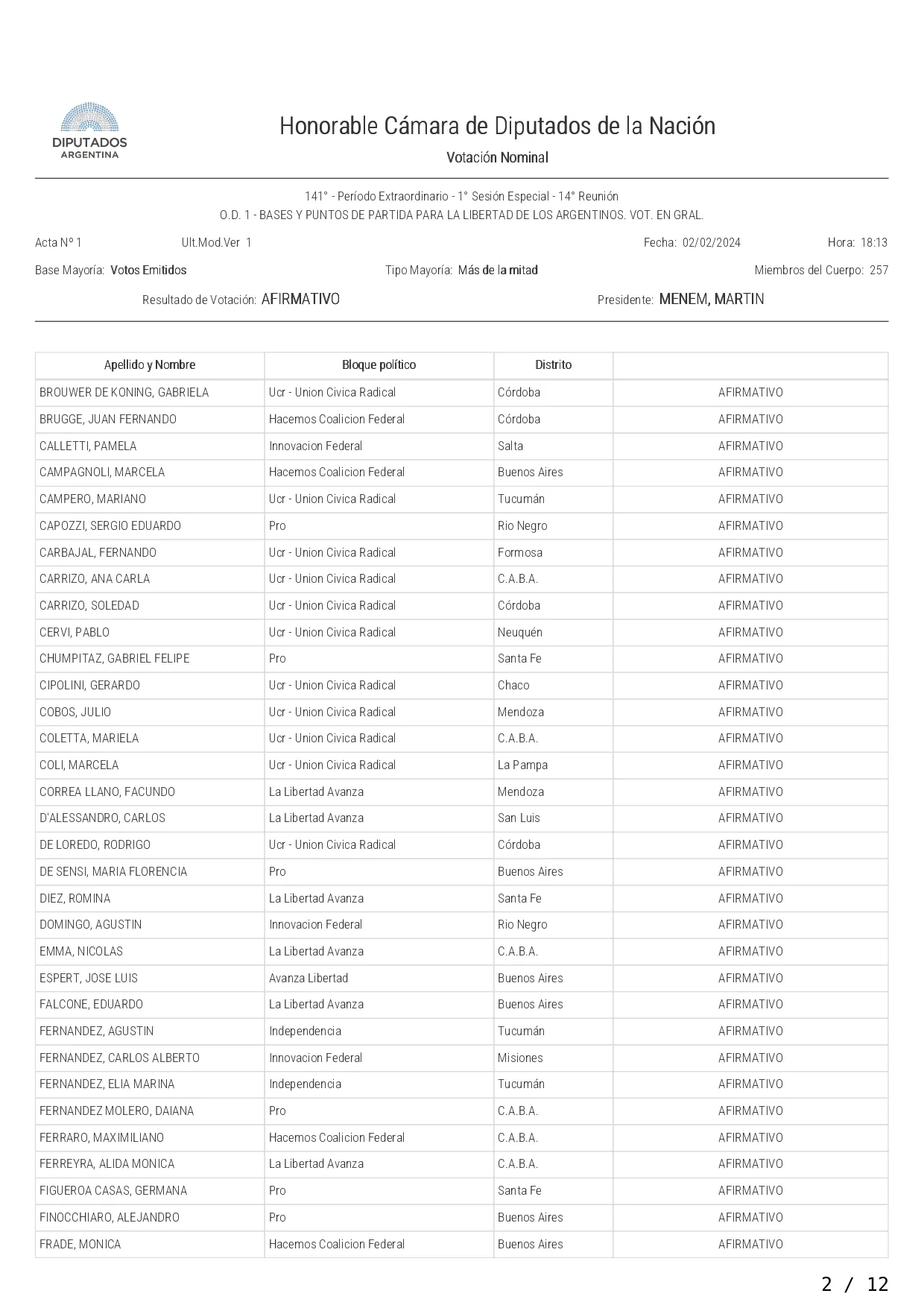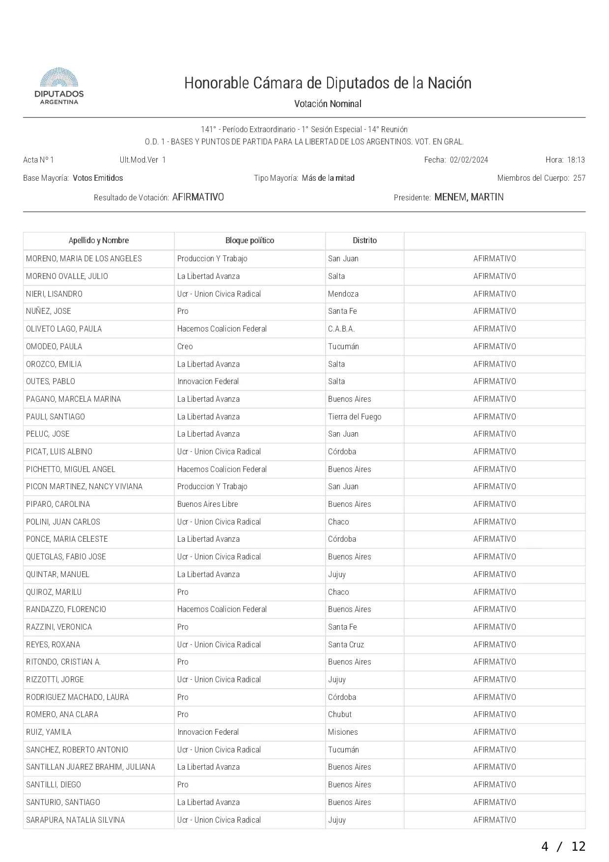 La iniciativa fue votada con el respaldo de los diputados de la Libertad Avanza, UCR, PRO, Hacemos Coalición Federal, Innovación Federal, Creo; Avanza La Libertad, Producción y Trabajo, Buenos Libre, Independencia y Unión Mendocina.