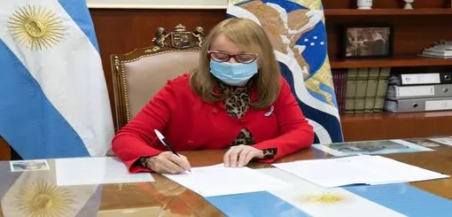Durante el acto acompañaron a la Gobernadora el Ministro de Salud y Ambiente, Claudio García, quien también rotuló el decreto; y Julia Ruiz, Secretaria de Estado de Gestión Pública y una de las representantes del Poder Ejecutivo en las audiencias sectoriales.