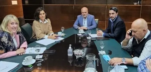 Otro de las reuniones de Saloniti fue con el jefe de Gabinete provincial Sebastián González, el secretario general y de Servicios Públicos, Leonel Dacharry, el titular del IPVU-ADUS Marcelo Sampablo, y la Subsecretaria de Derechos Humanos de la provincia, Alicia Comelli.