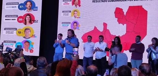 Vamos a buscar ese 50% que está esperando que les cumplamos sus sueños. Somos lo que hacemos. Esa es una gran verdad. Pondremos el corazón con humildad. Quiero felicitar a los intendentes de Salta que hoy nos acompañan y a mi compañero de fórmula el Gringo Marocco”, dijo el reelecto gobernador Gustavo Sáenz, quien ganó en esta jornada electoral con más del 47% de los votos y que fue transmitido por la radio pública.