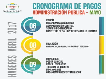 El cronograma de pago, de haberes netos para los Empleados de la Administración Pública Provincial y Municipal por el período Abril 2017 fue anunciado ésta mañana.