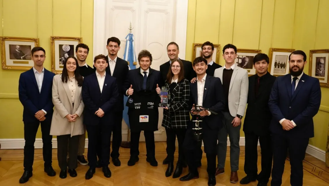 El Presidente Milei recibió al equipo argentino campeón del Mundial 2025 de la Competencia Internacional de Ingeniería Aeroespacial (CanSat), organizado por la AAS y respaldado por la NASA.