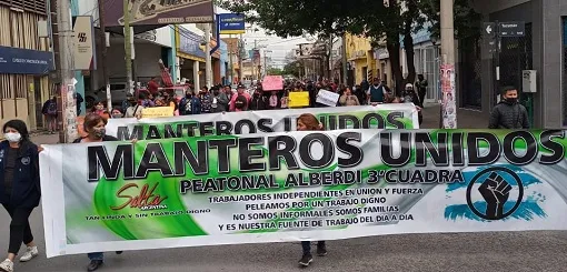 Vendedores agrupados en Manteros Unidos se manifestaron frente a la sede de la Municipalidad de Salta, tras ser desalojados por la policía de las peatonales Alberdi y Florida, donde solían comerciar después de las 21 horas. Luego de que un grupo de referentes se entrevistara con la secretaria de Gobierno, Frida Fonseca, quien les comunicó la intención de prohibir la venta ambulante en el microcentro, marcharon hasta la Avenida San Martín, a la altura de las peatonales, donde mantienen un corte de tránsito.