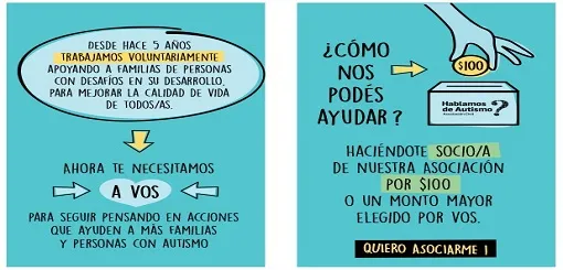 Celeste Klug, Presidenta de la Asociación Civil "Hablemos de Autismo" de Concepción del Uruguay dijo en LT 11 que están haciendo una convocatoria de socios, pudiendo las personas colaborar con una cuota base de $100 pesos.