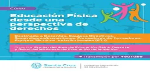 El Gobierno de Santa Cruz, a través del Consejo provincial de Educación, invita a participar del Curso “Educación Física desde una perspectiva de derechos”, destinado a Docentes, Equipos directivos, Supervisores/inspectores, Formadores de formadores, Equipos técnicos jurisdiccionales (ETJ).