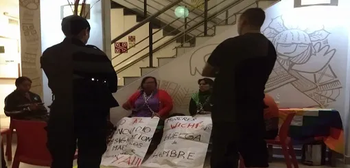 La Policía de Salta intenta desalojar a mujeres wichí que realizan una huelga de hambre dentro del Museo de Arqueología de Alta Montaña (MAAM) Las manifestantes exigen que el Ministerio de Educación designe maestros bilingües en la Comunidad Misión Chaqueña.