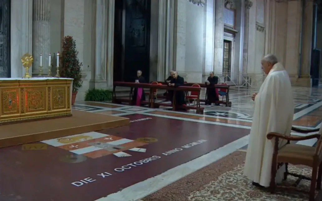 Durante el inédito rezo, en una Roma lluviosa, el Papa estuvo flanqueado por los dos símbolos frente a los que había rezado el domingo 15 de marzo en su única salida del Vaticano desde la difusión de la pandemia.