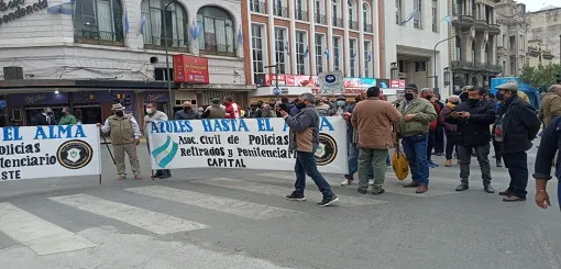 La asociación civil “Azules hasta el alma” realizó una protesta con corte de calle en Plaza Independencia, para reclamar que policías y penitenciarios retirados no pueden cobrar sus jubilaciones porque los expedientes no avanzan en ANSES. “Lamentablemente ANSES demora muchísimo en otorgar una pensión. Calcule usted que una persona que se queda sin su sueldo y con todas las obligaciones que tiene que cumplir, ¿cómo hace para sobrevivir? ANSES no nos da respuestas, los policías que se han jubilado en marzo están en espera de su jubilación y han pasado todos estos meses impagos.