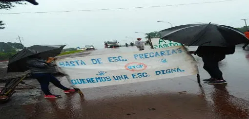 Padres de alumnos de la escuela de frontera 611 de Puerto Esperanza, cortaron ayer la ruta 12 en reclamo de mejoras edilicias y amenazan continuar mañana con la misma medida si es que  la empresa constructora no llega hoy a comenzar las obras. Gladys Balbuena, nos comentó la situación.