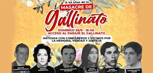 A 45 años de la llamada Masacre del Gallinato Radio Nacional Salta recuperó la voz de los vecinos de la zona, Juan Moreyra y Nicolàs Alancay entrevistados por El Influencer, y en una entrevista propia de la hija de Fernández Arcieri y Gamboa, Mariana Gamboa.