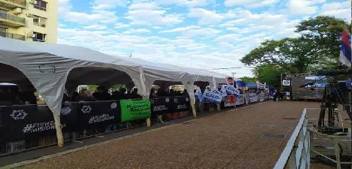 El gobernador, Oscar Herrera Ahuad, da inicio al período legislativo con un discurso a invitados, legisladores y prensa acreditada que se encuentran en el recinto, mientras que mucha gente espera en la plaza acompañando al gobierno del Frente Renovador de la Concordia.