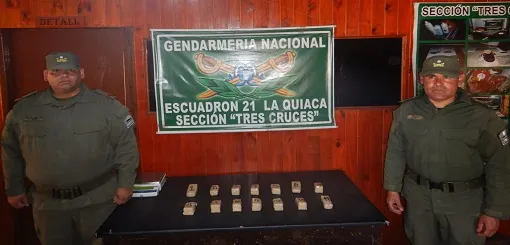 En el puesto de control de Gendarmería Nacional en la localidad de Tres Cruces, se produjo la detención de un hombre de nacionalidad boliviana el cual llevaba entre sus pertenencias una bolsa de choclos y dentro de los mismos se encontraban 12 paquetes de cocaína. El comandante Severo Haberkorn, jefe del Escuadrón 21, refirió que “es la primera vez que vemos este tipo de modalidad, el detenido se encuentra a disposición de la justicia”.