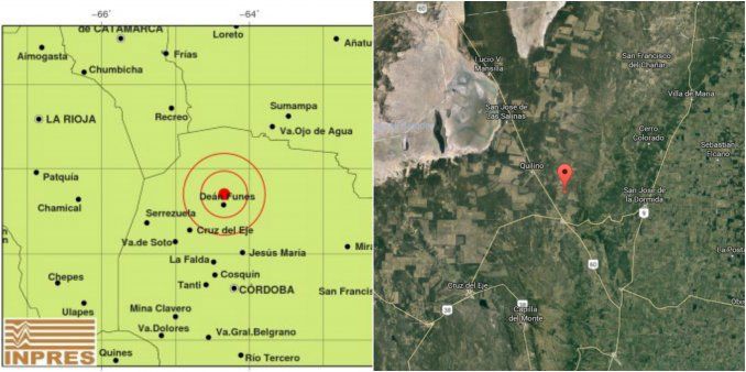 Según el Instituto Nacional de Prevención Sísmica (INPRES), el movimiento telúrico tuvo como epicentro a la ciudad de Dean Funes, 122 kilómetros al norte de Córdoba y 246 kilómetros al sudeste de San Fernando del Valle de Catamarca.