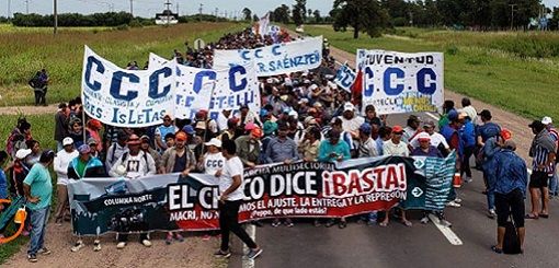Marchan bajo el lema "Pan, Paz, Tierra, Techo y Trabajo"
