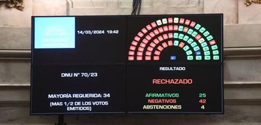 Con 42 votos el Senado rechazó el mega DNU