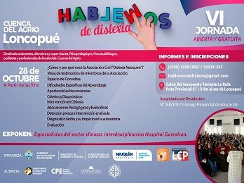Loncopué recibirá la 6ta jornada del programa provincial Hablemos de Dislexia