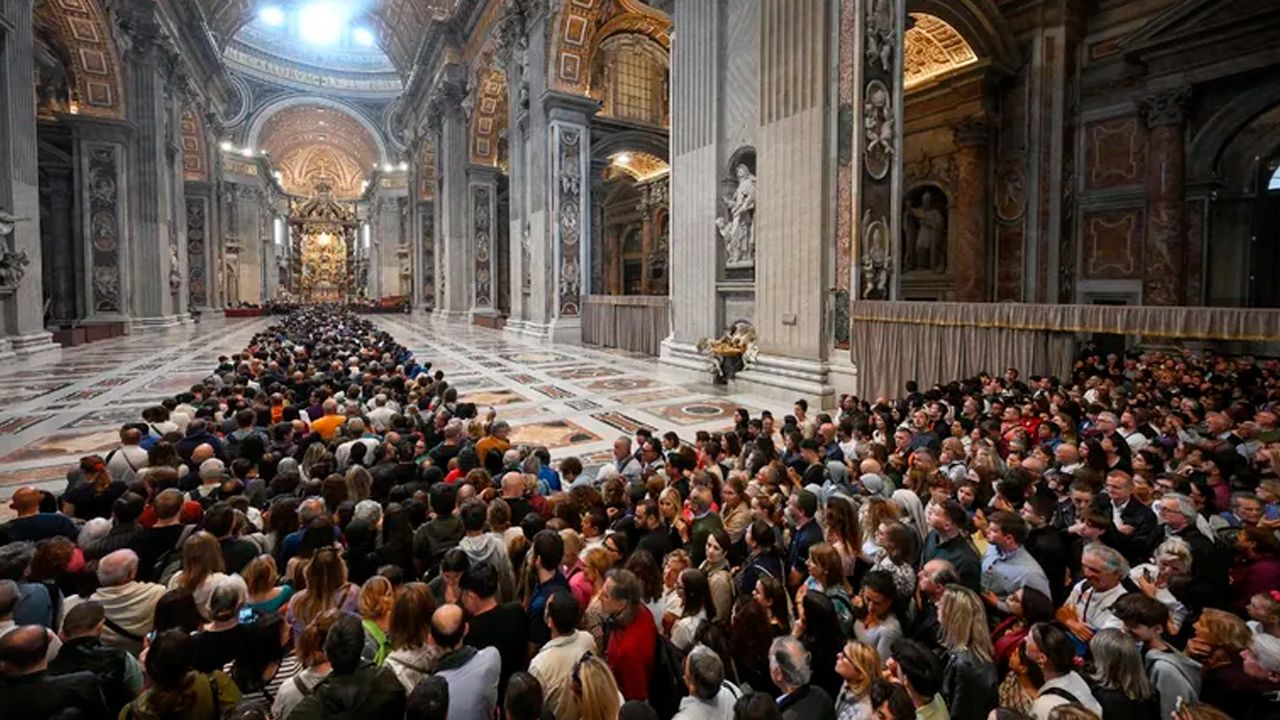Largas filas para ingresar a la Basílica de San Pedro en el segundo día de despedida al papa Francisco