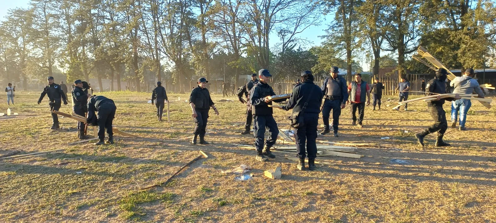 Policía de Salta desalojando el lugar.