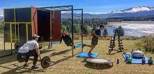 Este carrito es una especie de “Fit Trucks” y que puede ser conectado a todo vehículo y uno lo puede llevar a cualquier lugar al aire libre, es decir uno puede realizar actividad física, con este gimnasio móvil, en un lugar de ensueño, como puede ser la Laguna La Zeta.